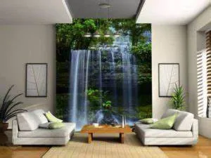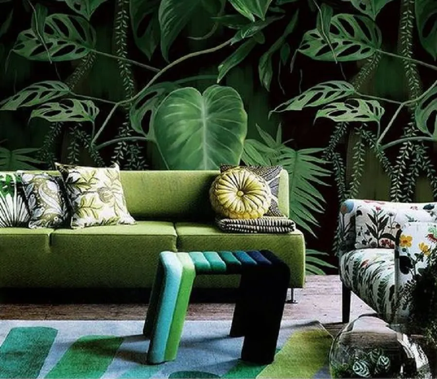 Bayangkan ruang tamu Anda seperti hutan mini yang menyegarkan, dengan wallpaper bergambar tumbuhan dan daun yang menghiasi dinding. Ini seperti memiliki taman pribadi tanpa perlu menyiram!