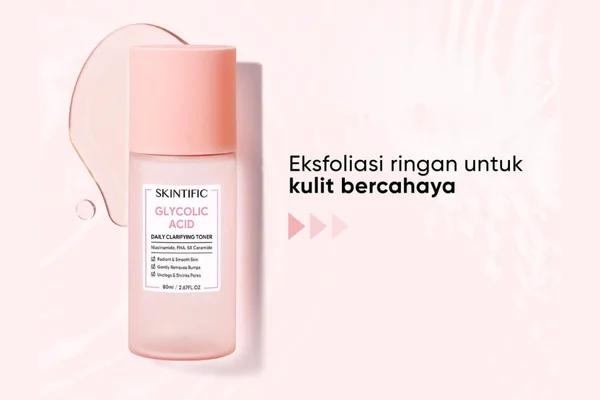 Toner yang mengandung glycolic acid yang bisa membantu mencerahkan kulit dan menghilangkan sel kulit mati.