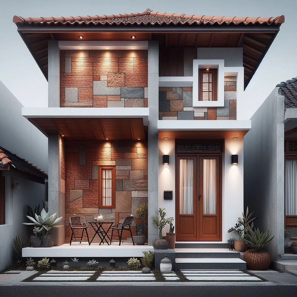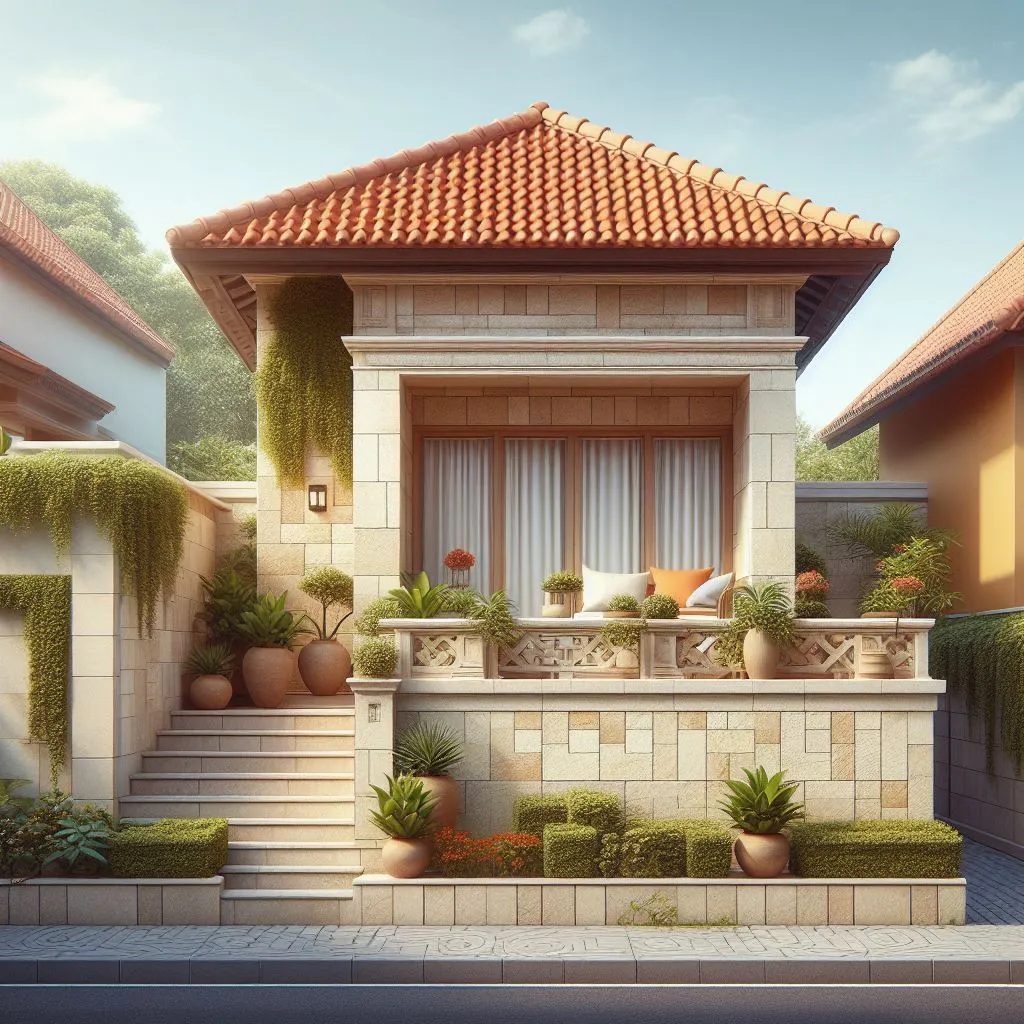 Teras Batu Alam Setengah Badan dengan Gaya Minimalis