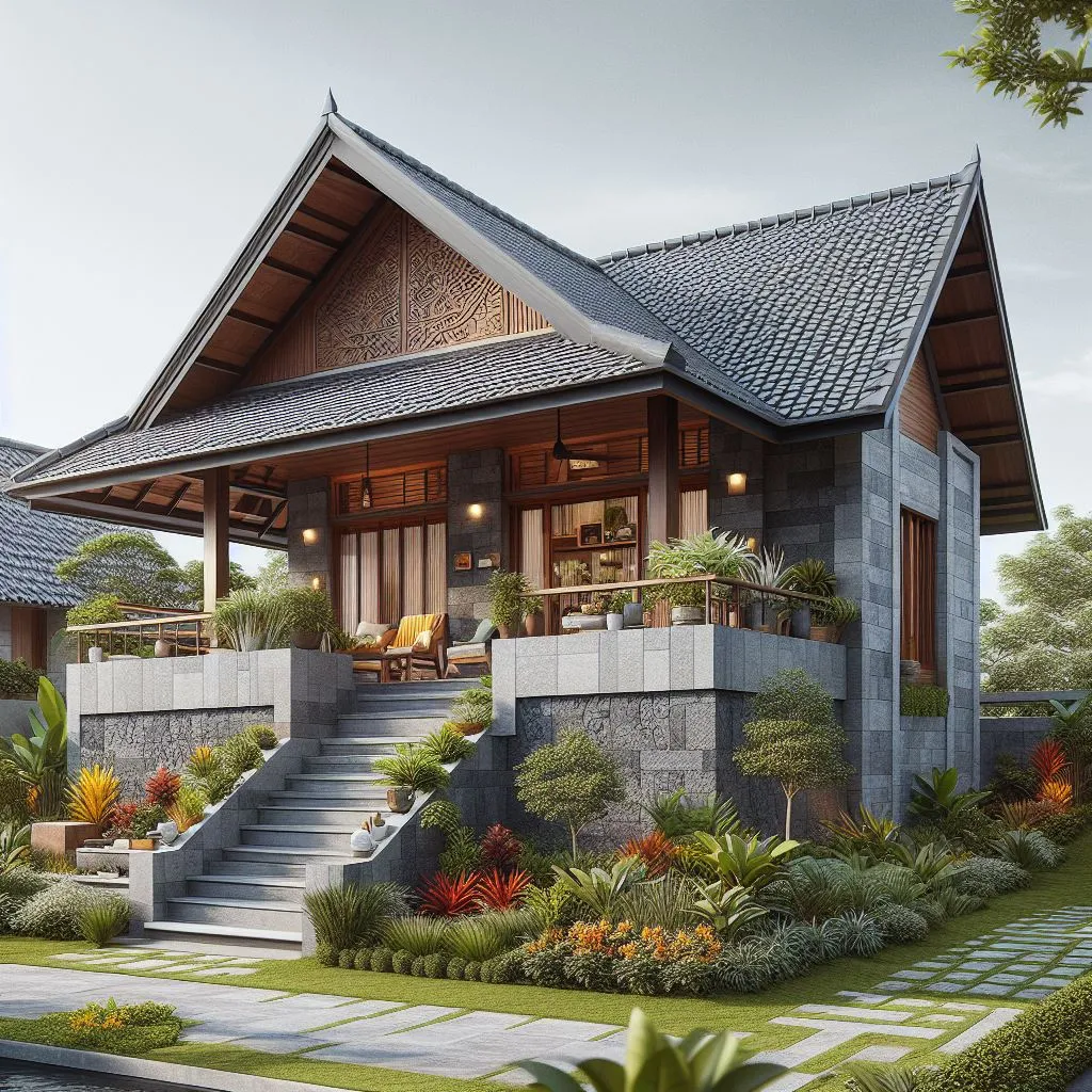 Teras Batu Alam Setengah Badan dengan Gaya Modern