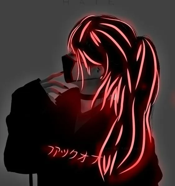 Karakter anime cewek dengan sentuhan merah yang memikat.
