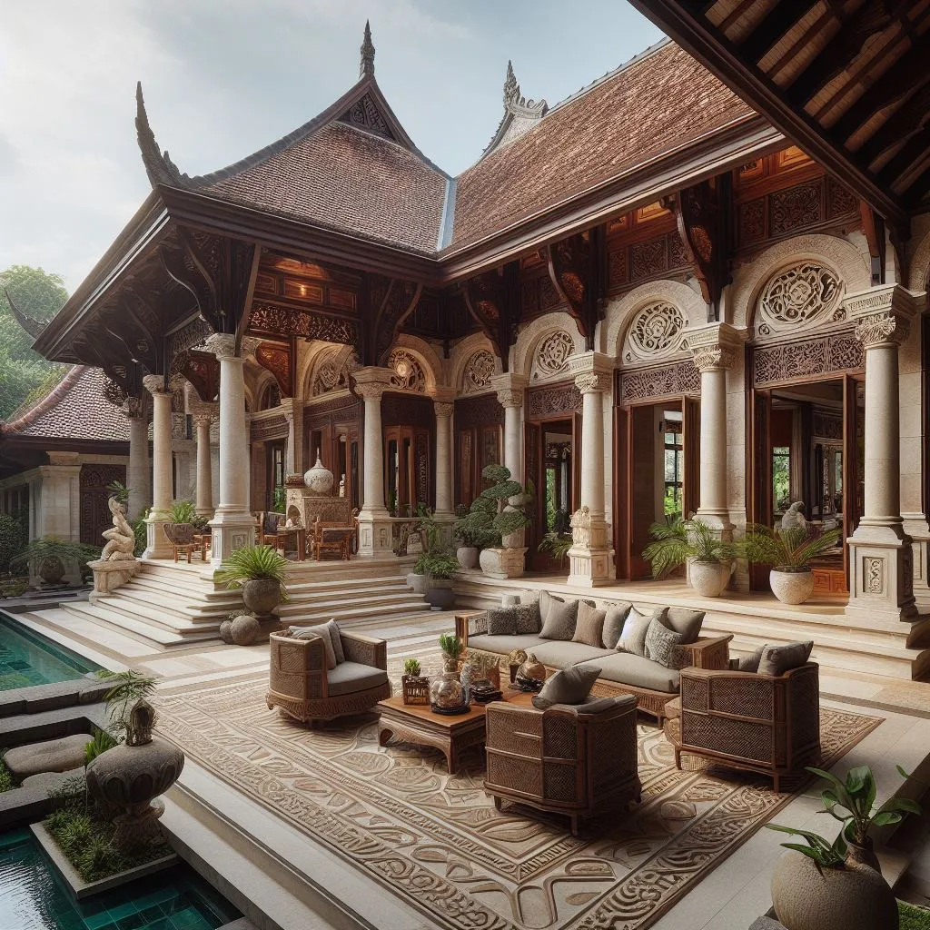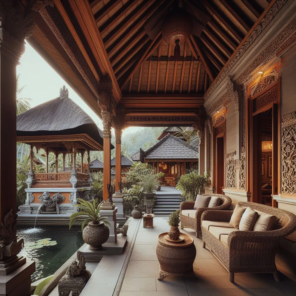 Agar lebih menarik, Anda bisa menambahkan elemen etnik, seperti ornamen, ukiran, atau patung pada teras rumah Anda.