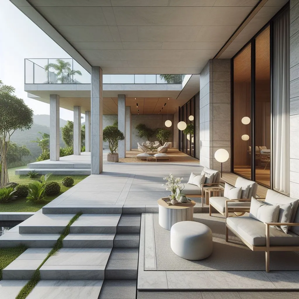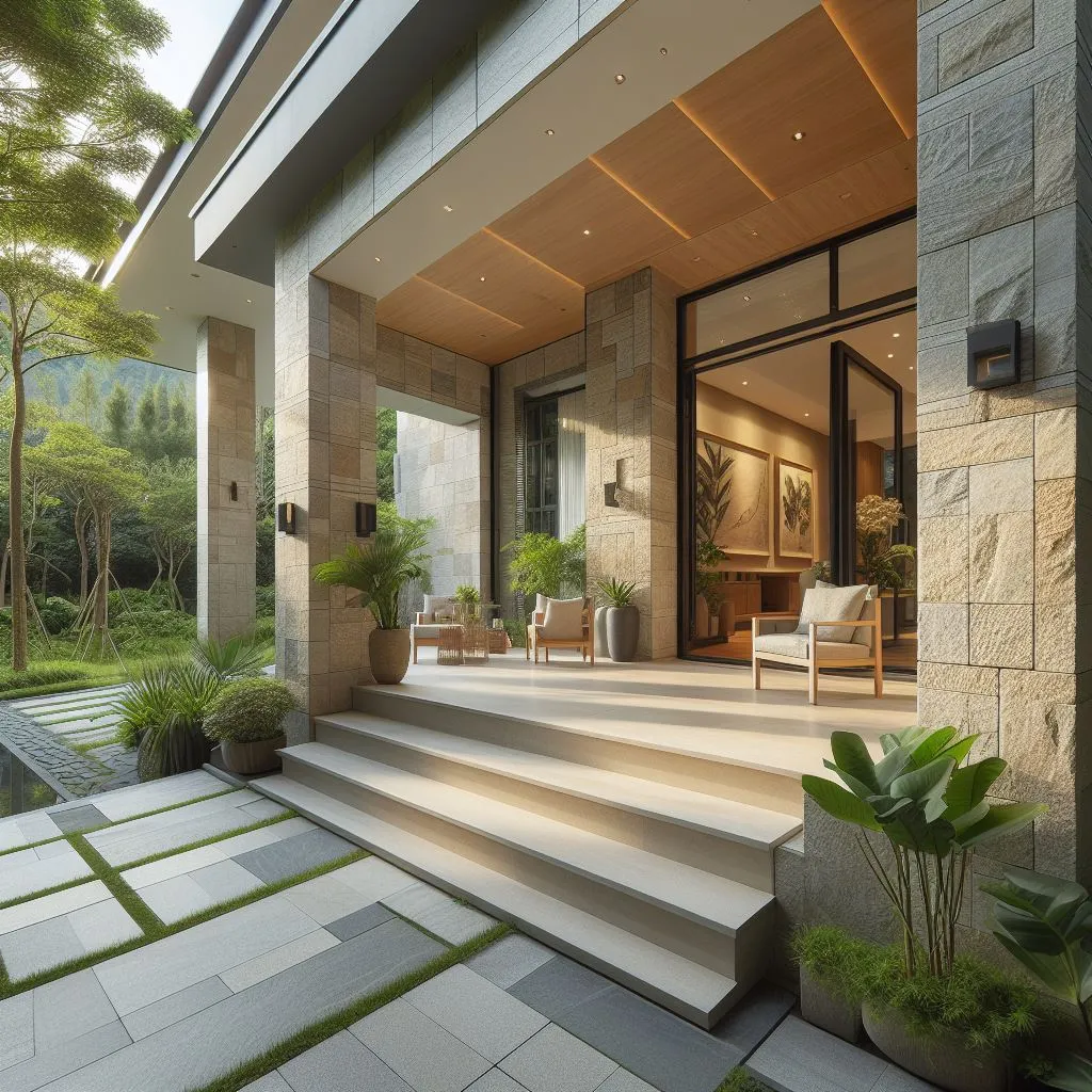 5. Teras Batu Alam Setengah Badan dengan Kombinasi Warna