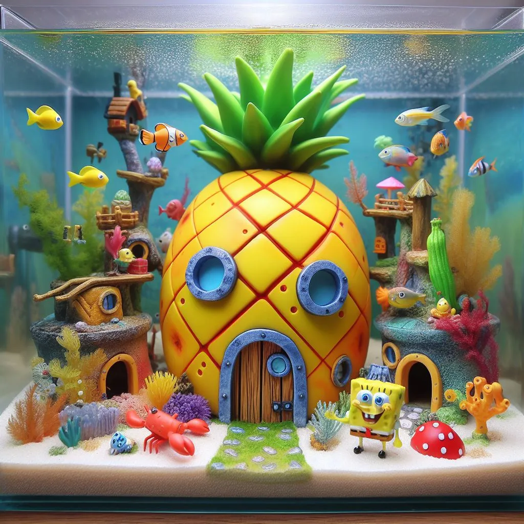 Siapa yang tidak mengenal karakter spons kuning berbentuk kotak yang tinggal di Bikini Bottom? Karakter ikonik Spongebob yang tinggal di dalam sebuah rumah nanas kerap dijadikan diorama cantik yang dijamin bikin ikan tambah betah.