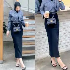 Contoh: Blazer hitam + rok pensil abu-abu + loafers. - Untuk Gaya Kasual