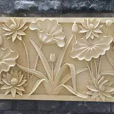 Batu paras Jogja memberikan kesan klasik dan tradisional pada teras dengan permukaan halus dan ukiran indahnya.