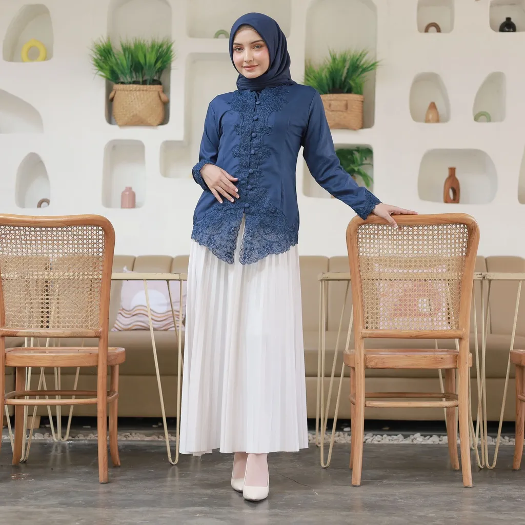 Kebaya peplum dengan detail lipit di pinggang memberikan kesan ramping dan feminin. Model kebaya peplum yang dipilih sebaiknya memiliki bahan yang ringan dan jatuh agar tidak membuat tampilan terlihat berlebihan. Padukan dengan rok pensil atau rok A-line untuk menciptakan tampilan yang modis dan chic.