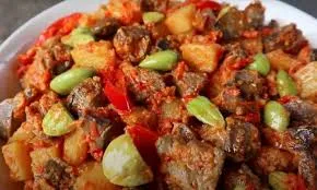 Sambal goreng kentang ati ampela merupakan hidangan pelengkap yang selalu hadir di momen Lebaran. Kentang dan ati ampela dimasak dengan bumbu pedas dan menghasilkan rasa yang gurih dan pedas.