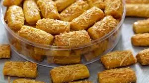Kue kastengel adalah kue kering yang terbuat dari tepung terigu, keju, dan butter. Kue kastengel biasanya disajikan dengan teh atau kopi.