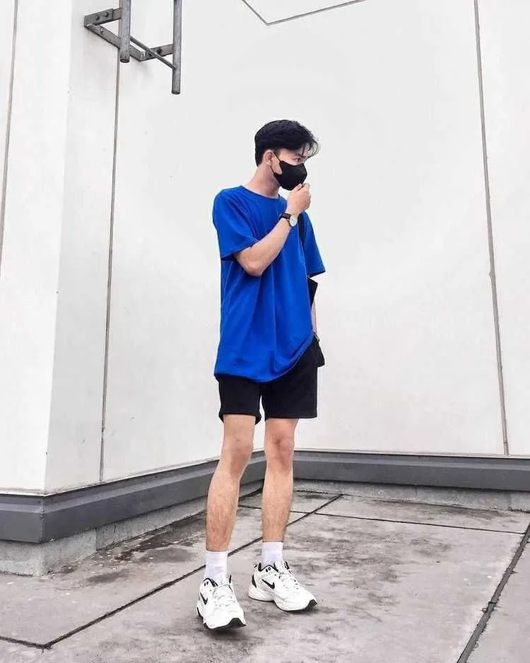 Mulailah dengan gaya yang paling sederhana namun tetap mengesankan: kaus slim fit dan celana pendek berwarna kontras. Contohnya, padukan kaus hitam dengan celana putih. Tambahkan sentuhan akhir dengan jam tangan dan sepatu sneaker yang sejajar dengan warna kaus.