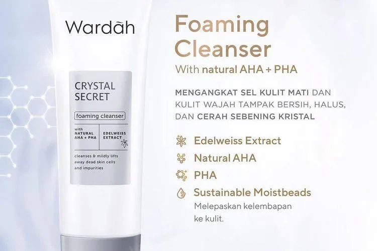 Mengandalkan bahan alami seperti AHA, PHA, dan Moistbeads, Wardah Crystal Secret Foaming Cleanser adalah pilihan yang sempurna untuk kulit yang cerah dan bersih.