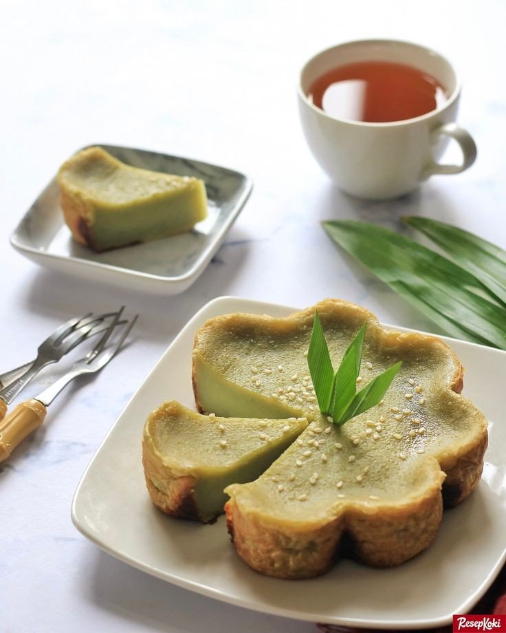 Kue mangkok biasanya berwarna-warni, seperti hijau, merah, atau kuning, dan ditaburi dengan parutan kelapa di atasnya.