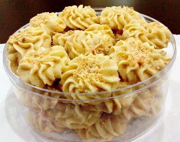 Kue semprit biasanya diberi hiasan seperti selai, cokelat, atau meses di atasnya.