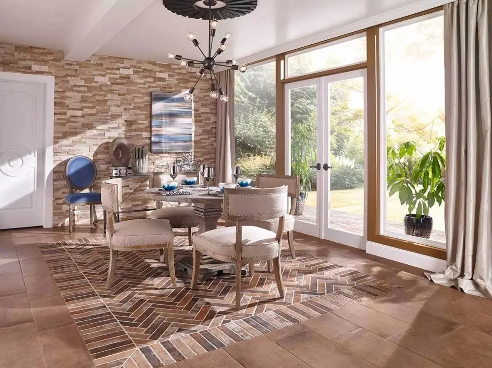 Bawa nuansa rustic, industrial, atau natural dengan keramik lantai motif bata. Cocok untuk ruang terbuka maupun tertutup, keramik ini memberikan kesan estetis yang kuat dengan pola penyusunan yang kreatif.