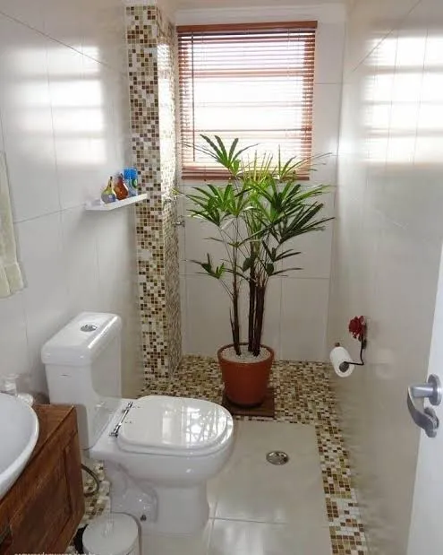 Pilih tanaman yang cocok untuk lingkungan lembap seperti pakis atau anggrek, serta tambahkan bahan alami seperti bambu atau kayu dalam dekorasi kamar mandi.