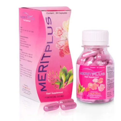 - Merit Plus mengandung kombinasi bahan alami seperti ekstrak teh hijau, ekstrak asam gelugur, ekstrak jati belanda, ekstrak kulit buah delima, dan chromium.