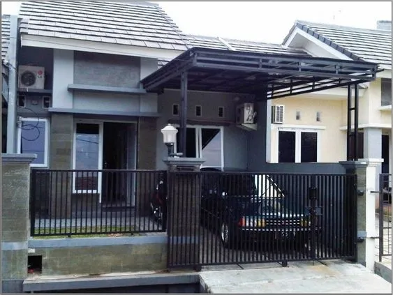 Pintu pagar ditempatkan di depan garasi atau samping rumah untuk menambahkan keindahan visual.