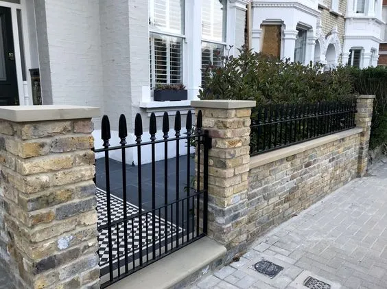 Jika Anda menginginkan sesuatu yang lebih unik daripada model pagar sederhana, pertimbangkanlah perpaduan antara besi dan batu bata.