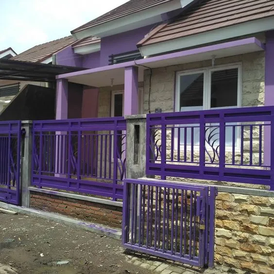 Untuk sesuatu yang berani dan berbeda, cobalah menggunakan warna ungu pada pagar rumah Anda.