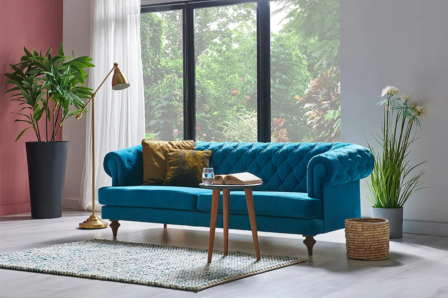 Sofa berwarna biru tua menjadi favorit dalam desain modern karena kecerdasan dan keelegannya.