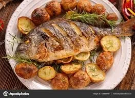 - Panggang ikan, kentang, dan sayuran dalam oven hingga matang dan berwarna kecokelatan. Hidangan ini kaya akan protein dari ikan, karbohidrat kompleks dari kentang, serta serat dan vitamin dari sayuran panggang. Tingkatkan kelezatannya dengan tambahan rempah-rempah dan bumbu favorit Anda.