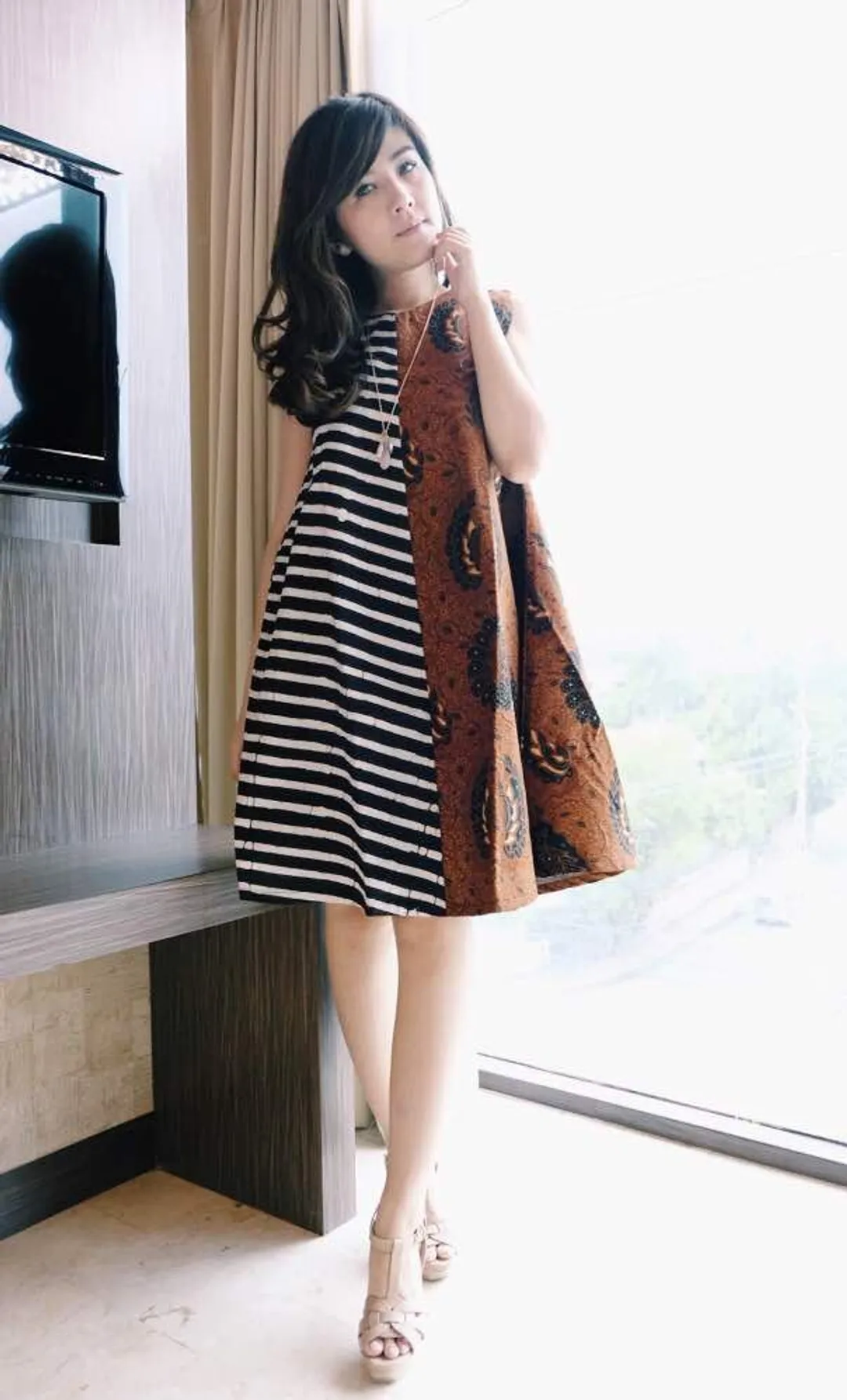 6. Baju Lurik Model Two Tone: Mini Dress Kombinasi Batik