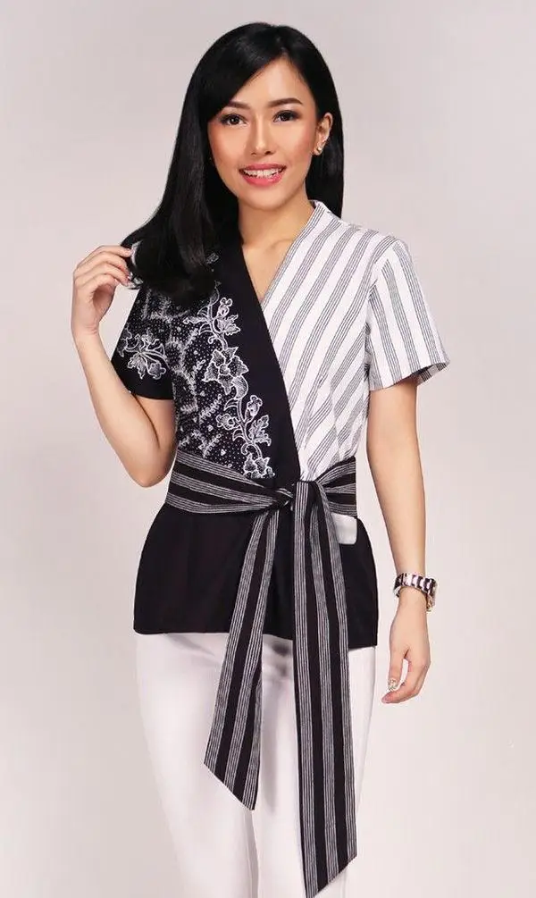 Kombinasikan dengan bawahan kulot atau kain batik untuk tampilan yang chic dan sophisticated.
